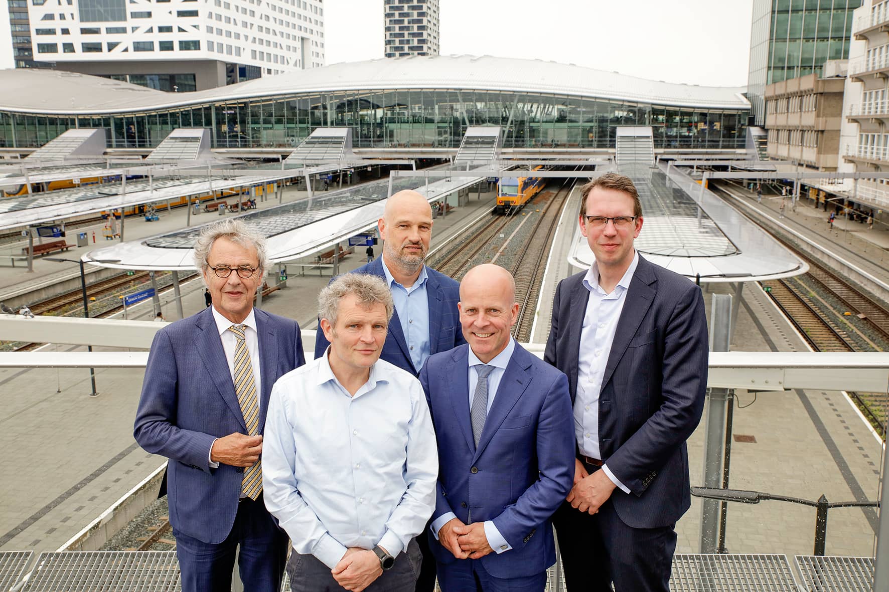 V.l.n.r: Roger van Boxtel (president-directeur NS), Floris Alkemade (Rijksbouwmeester), Victor Everhardt (wethouder Utrecht), Raymond Knops (staatsecretaris ministerie van Binnenlandse Zaken en Koninkrijkrelaties), John Voppen (Chief Operational Officer Prorail)