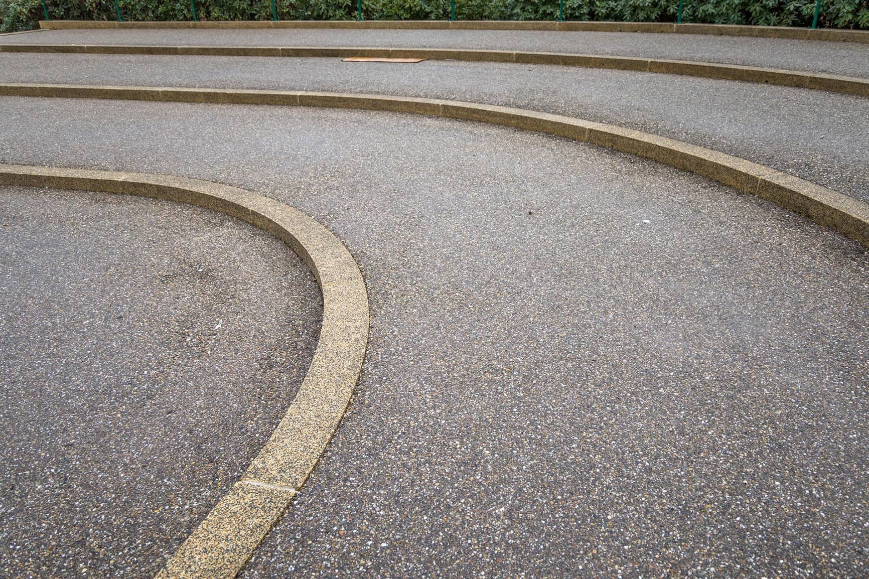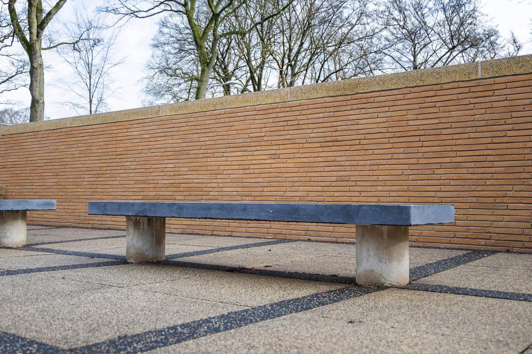 De bankjes rondom de luidklok zijn ook vervangen, net als het metselwerk op de achtergrond. De bestrating ziet er weer als nieuw uit.