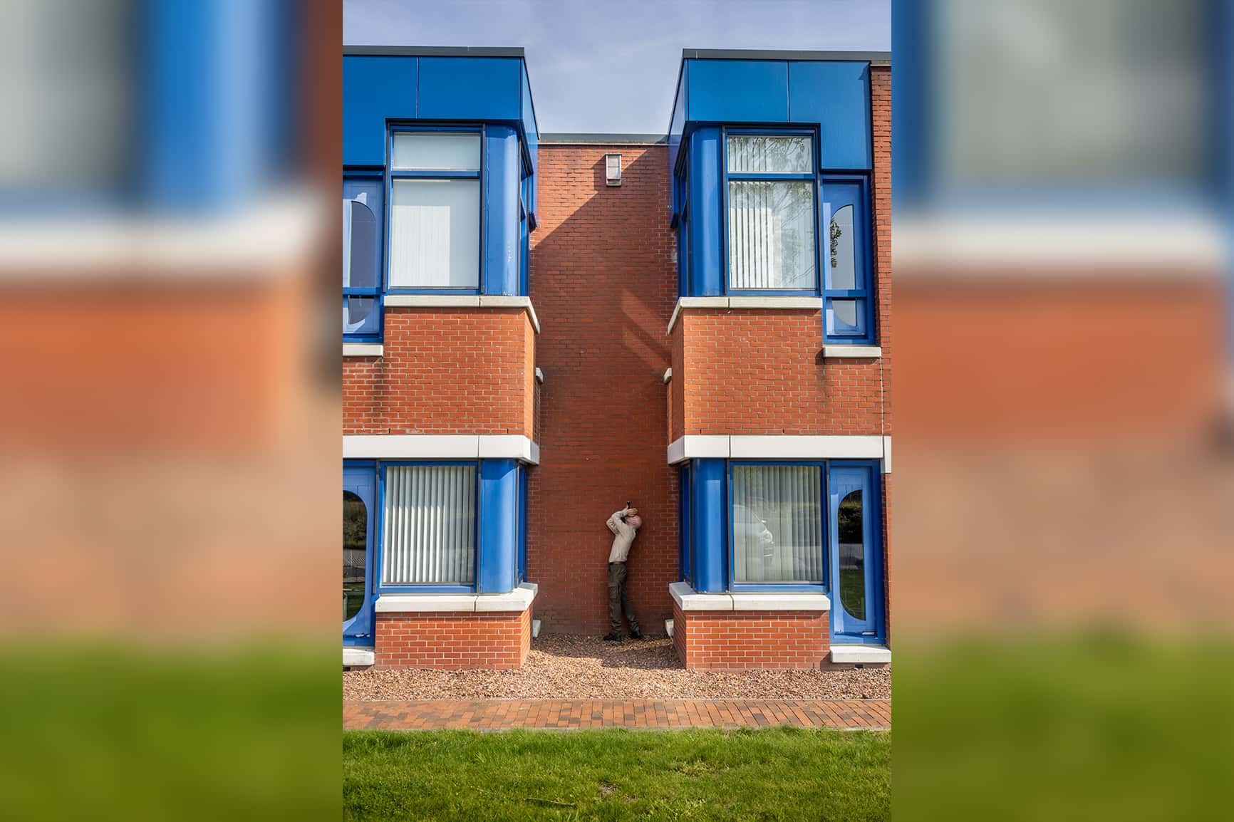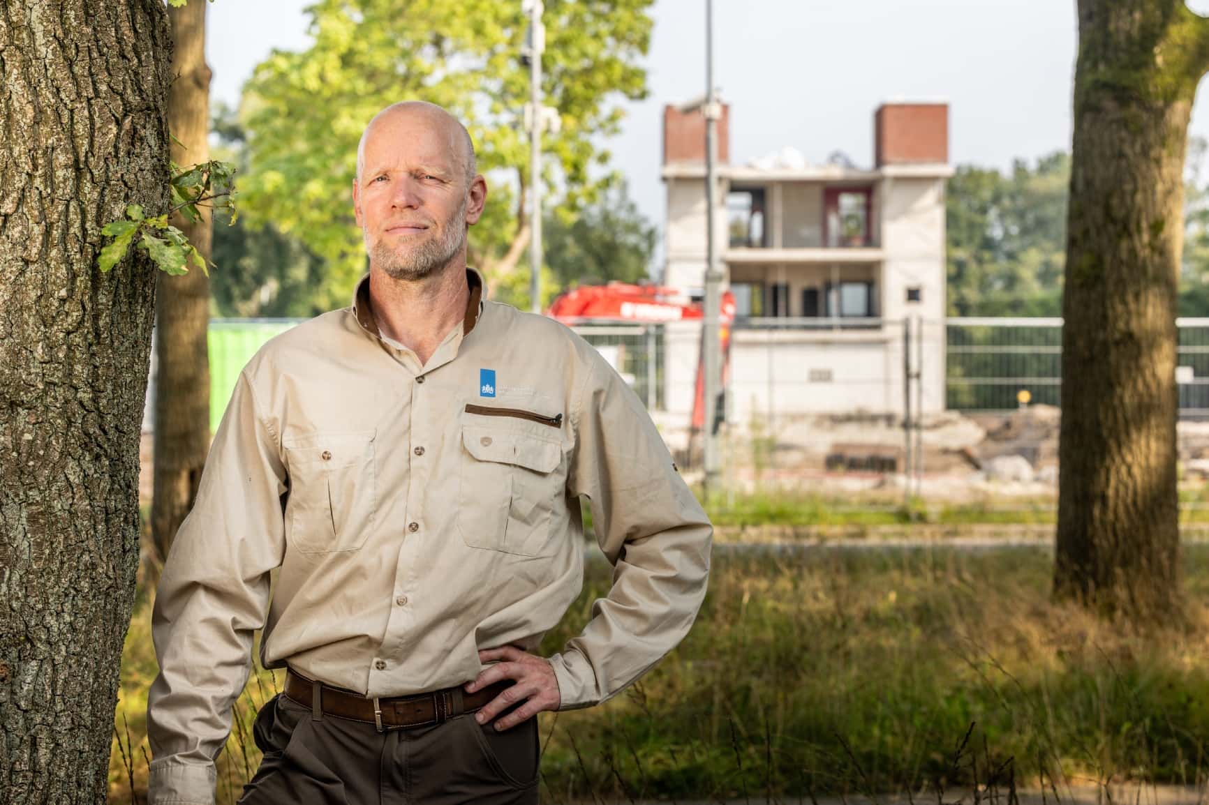 De dwerg- en andere vleermuizen gebruiken de spouwmuren om overdag te rusten en als overwinterplek. Maar de traditionele spouwmuur is in Nederland op zijn retour. Bestaande muren worden opgevuld met isolatiemateriaal. En in de hermetisch afgesloten nieuwbouw is het voor de dwergvleermuis al helemaal zoeken naar een plekje. ‘En het stootvoegje (open ruimte tussen twee bakstenen, red.), dat de vleermuis toegang geeft, is kleiner en kleiner geworden. Die ontwikkelingen kunnen echt een grote ramp worden. Zelf denk ik dat de gevolgen voor de dwergvleermuis mee kunnen vallen. Want hij is heel flexibel. Maar we moeten wel aandacht aan de vleermuizen besteden. Daarom is het echt belangrijk om natuurinclusief te blijven bouwen.’ En dat is precies wat het RVB doet bij de nieuwbouw voor de Mandemaat 3 in Assen. Daar stond tot voor kort een groot kantoor uit de jaren tachtig toen de spouwmuren nog gewoon hol waren. Het was een ideale plek voor de dwergvleermuis en de laatvlieger (een vleermuis die ’s avonds wat later op jacht gaat dan de dwergvleermuis).